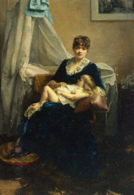 在欧美油画中,母亲的形象往往被描绘得温柔而伟大。她们或怀抱婴儿,或轻抚孩子的脸颊,眼神中充满了无尽的爱意。这种母爱,如同阳光般温暖,照亮了无数人的心灵。
